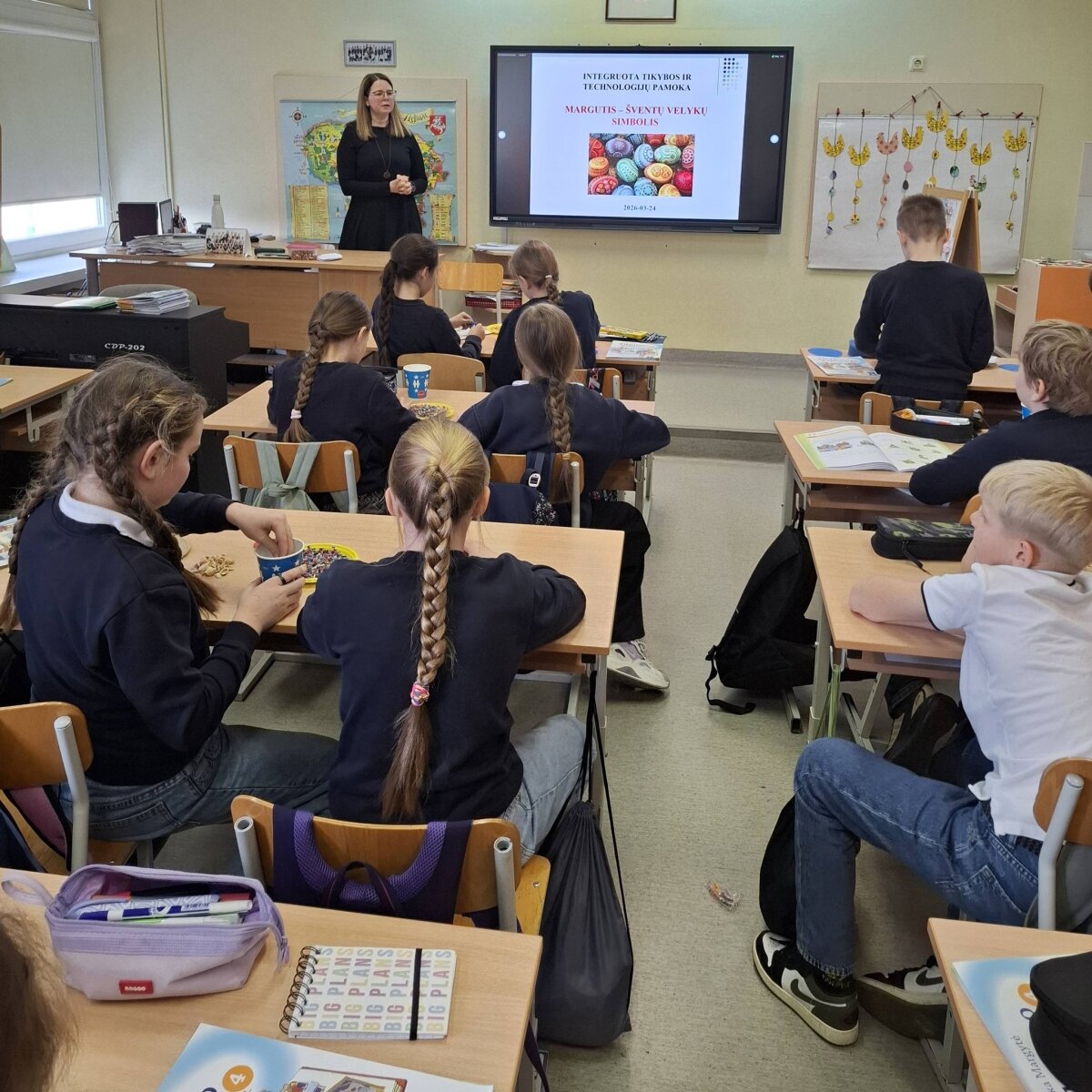 Mokiniai kūrė skaidres apie Velykas, domėjosi margučių raštais, patys dekoravo savo margučius. Jie sužinojo apie margučių kilmę, susijusią su atgimimu, gyvybe ir derlingumu.