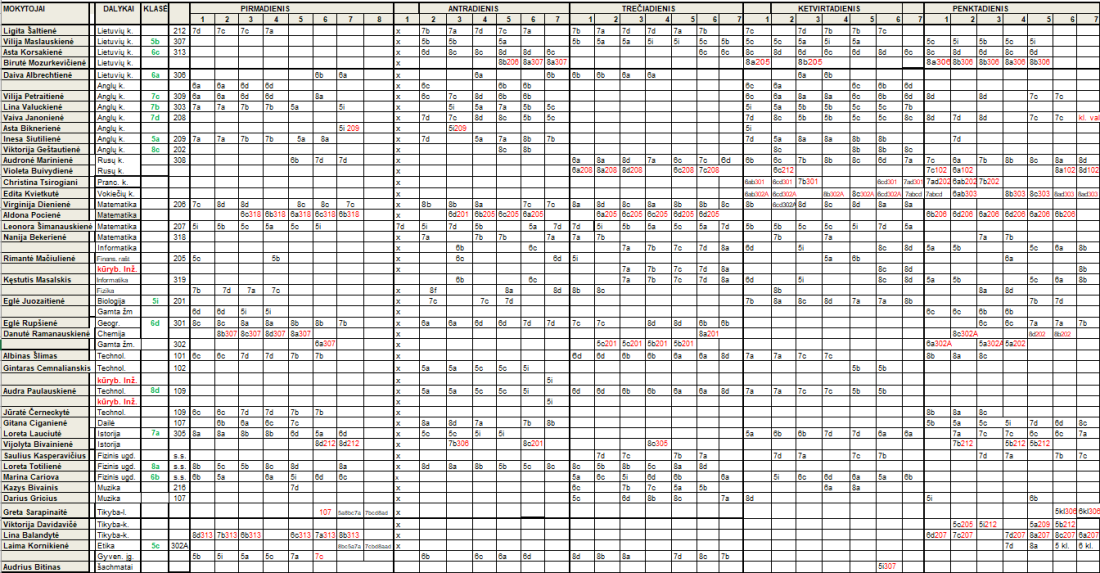 2025-2026 m. m. 5-8 klasių pamokų tvarkaraštis I pusmetis